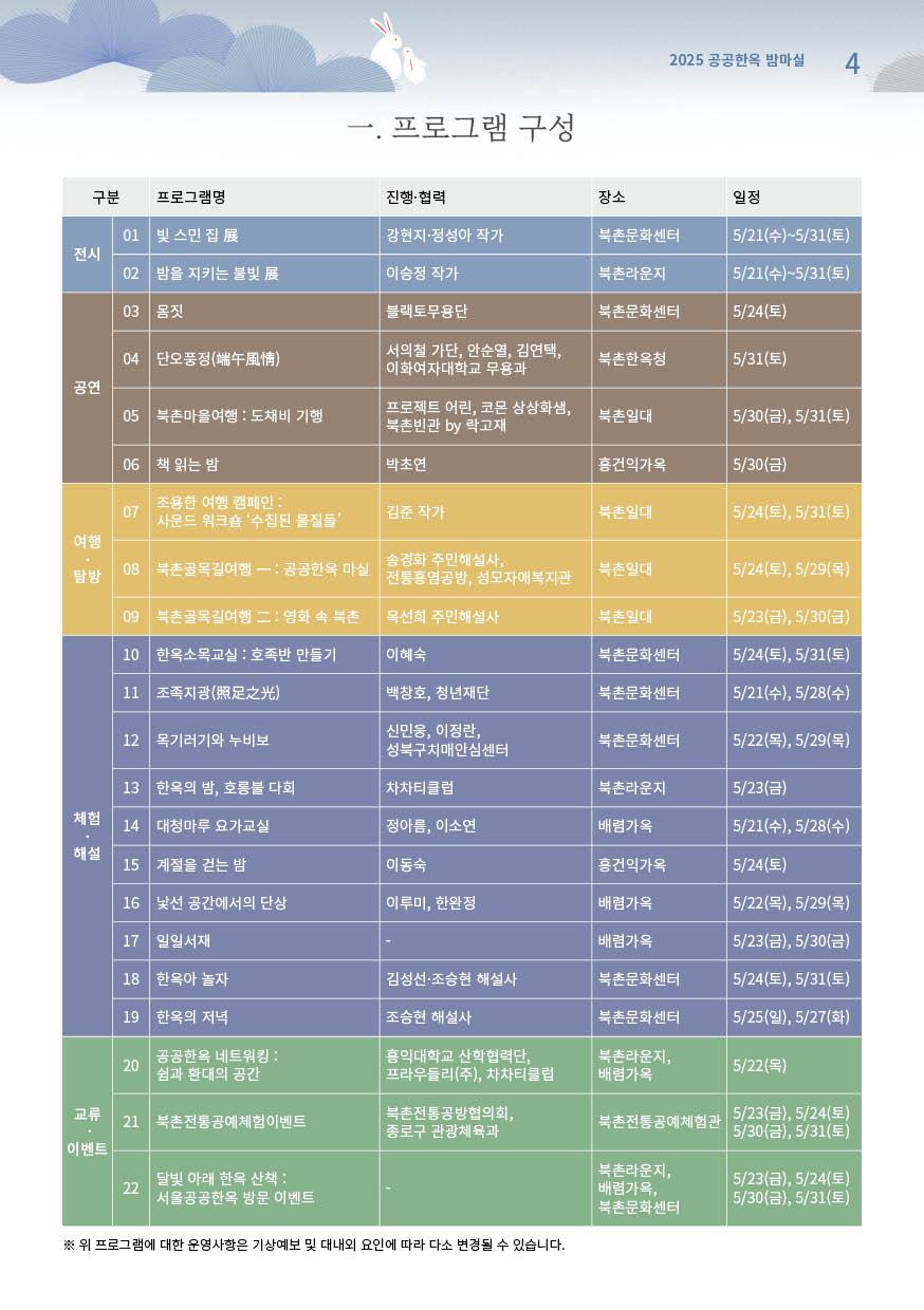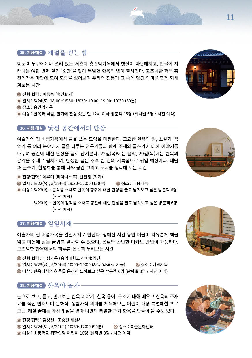 • 장소: 서울 북촌·서촌 공공한옥 9곳