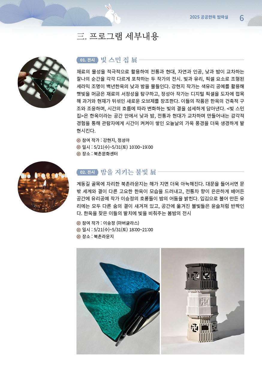 '2025년 공공한옥 밤마실'은 북촌과 서촌의 9곳 공공한옥에서 열리는 특별한 야간 문화행사예요.